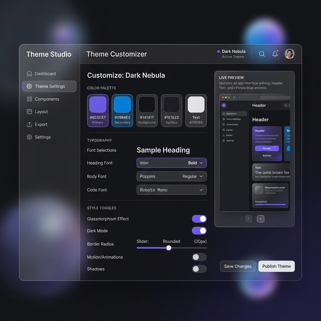 Your logo, colors, and style—auto-applied to your app in seconds.